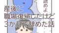 Top 2025.11.212026.02.24 – 新着記事 – 産後に職場復帰したけど3か月で辞めた話 コロナ禍、育休明けで職場復帰したものの、気を張りすぎて空回りな毎日・・・ 2026.04.18 ネイルを終わりにしようと思ったら号泣した話 ジェルネイルを一旦お休みしようと思った日の話。 2026.04.17 産後の体 妊娠中にゆっくりと蓄積した脂肪たち。 2026.04.16 夢らしい夢を見た話 ある日見た夢の話。 2026.04.15 体調不良と育児 産後三週間が経過したある日の出来事。 2026.04.14 – 人気記事 – 男性客に店内で追いかけられた話③ 2026.02.01 男性客に店内で追いかけられた話② 2026.01.302026.02.03 男性客に店内で追いかけられた話④ 2026.02.05 男性客に店内で追いかけられた話⑤(完結) 2026.02.07 男性客に店内で追いかけられた話① 2026.01.292026.01.30 記事一覧> カテゴリー ‐繊細さん‐ 余計なお世話 2026.03.202026.03.24 心配性 2026.02.24 誰の話ですか 2026.02.22 繊細さん記事一覧> ‐日常‐ ネイルを終わりにしようと思ったら号泣した話 2026.04.17 夢らしい夢を見た話 2026.04.15 間違い電話 2026.04.072026.04.10 日常記事一覧> ‐育児‐ 産後の体 2026.04.16 体調不良と育児 2026.04.14 うちのじぃじ 2026.04.13 育児記事一覧> -おすすめ記事- 男性客に店内で追いかけられた話「男性客に店内で追いかけられた話」の記事一覧です。 じいちゃんとお片付けバトル「じいちゃんとお片付けバトル」の記事一覧です。 PR「PR」の記事一覧です。 アーカイブ 2026年4月 2026年3月 2026年2月 2026年1月 2025年12月 2025年11月 2025年10月
