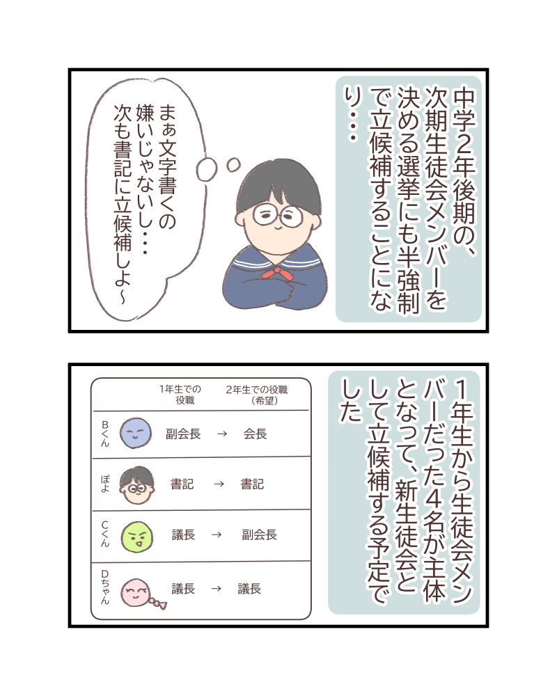 わたくしぽよが、むか~しむかし、中学校で生徒会長をしていた時のお話です。