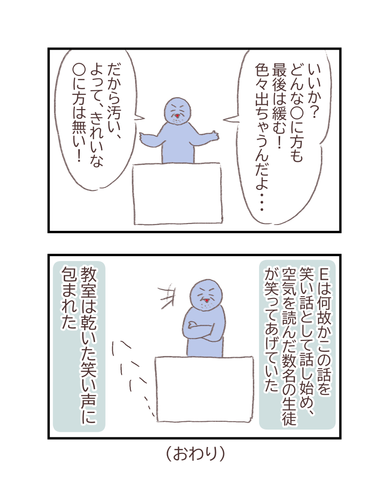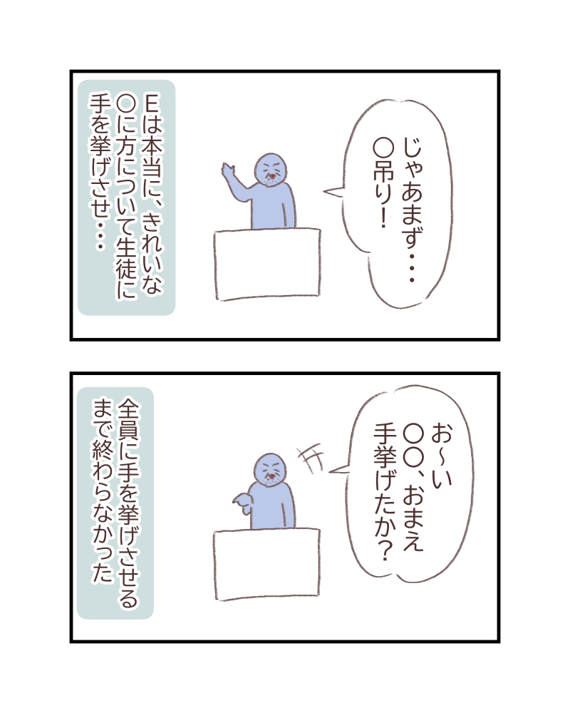 この人の本当の意図は私には分かりかねるので、当時どう思ってこういうことをしていたのか分からないですが、私からしたら生徒を追い詰めて困ってる様子を見て楽しんでるとしか思えず・・・