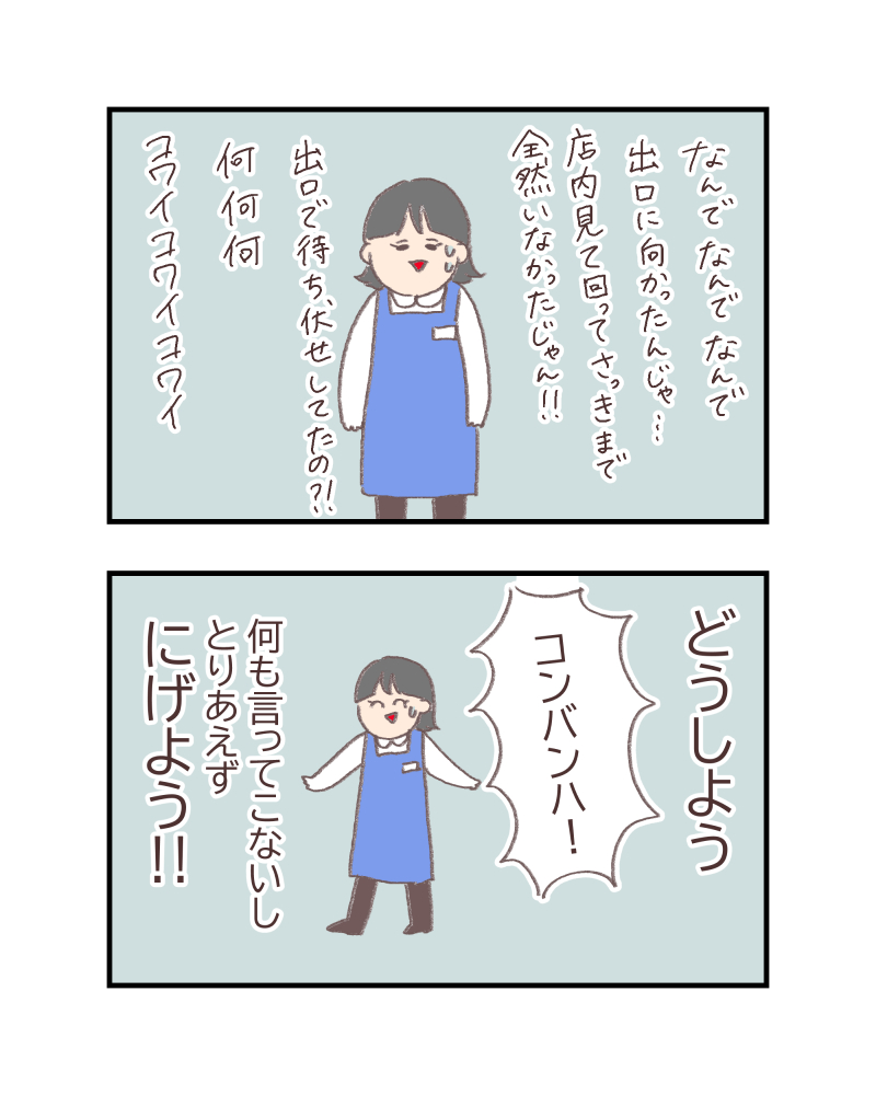 声かけてきた割には何も言わないので、挨拶したかっただけなのかな・・・?と思うことにしてその場を立ち去ったのですが・・・