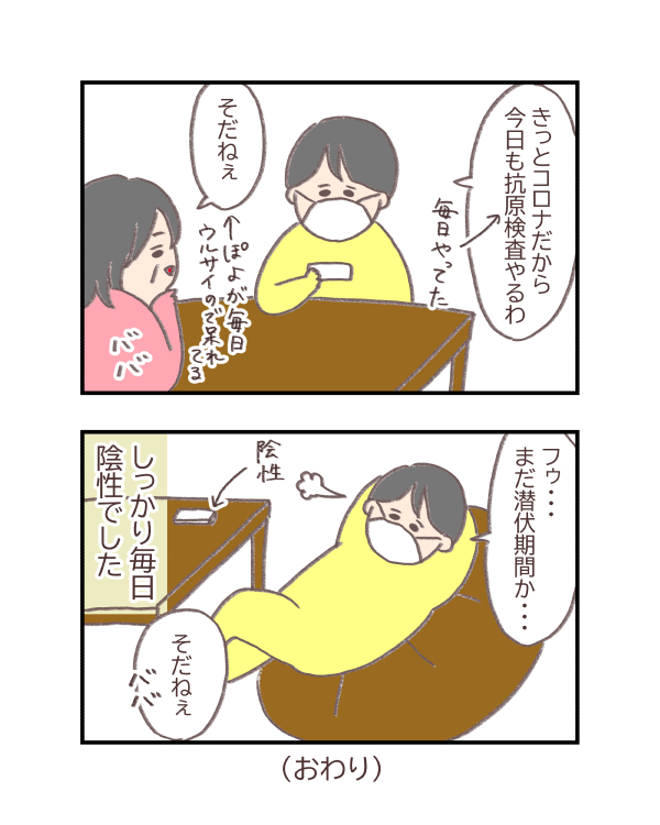 がんばってジジババとは動線分けたけど、子供たちと私たち夫婦はずっと同じ場所で暮らしてるからそりゃ感染するよね。