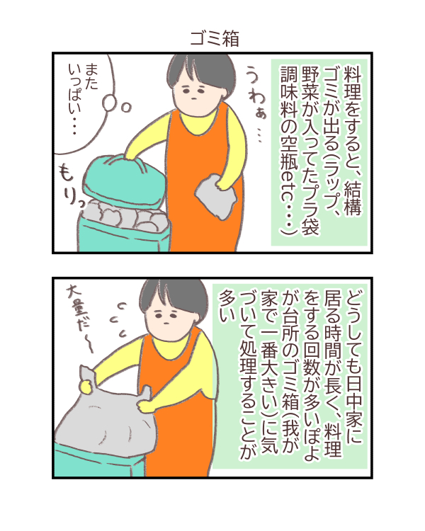 ゴミがいっぱいになったらゴミ箱から取り出して新しい袋に替えるだけなんだけど、料理してる最中にそれに気づくと結構困る・・・!
