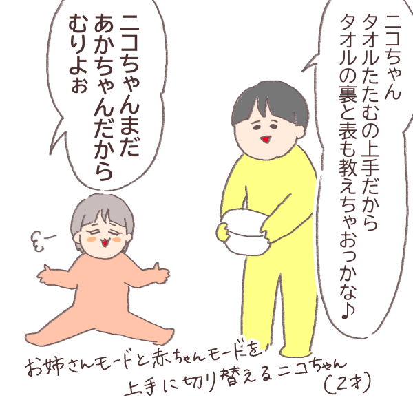 ニコちゃんはもうすぐ3歳、できることが増えてきて「やりたい」という意欲もあるし、困ってるお兄ちゃんを助けたいとか色んな感情が湧いてきているんだと思います。