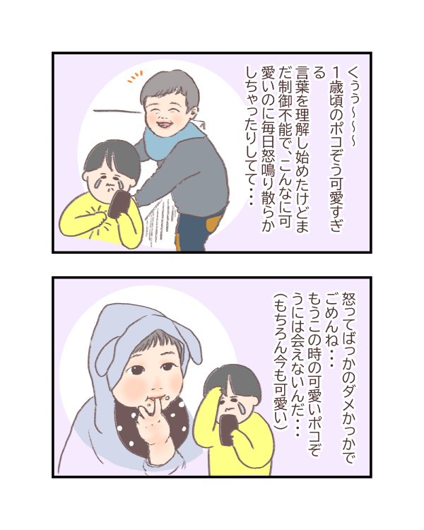 「かか、怒っちゃってごめんね。〇〇な気持ちだったんだよ。でも大きな声出しちゃってごめんね。」って謝ると、「ううん、ポコぞうが悪いんだよ。ポコぞうもごめんね。」と言ってくれるポコぞう・・・。