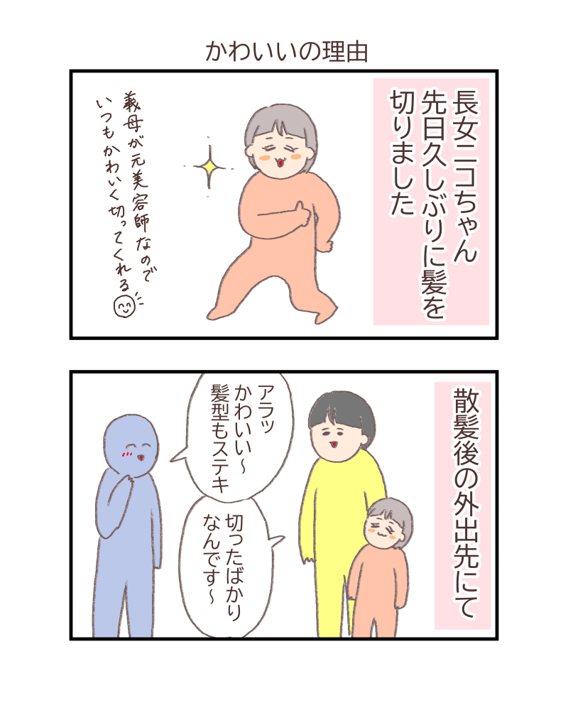 でも、ちゃんと「おばあちゃんが切ってくれたから可愛い」ってわかってるんですよね。