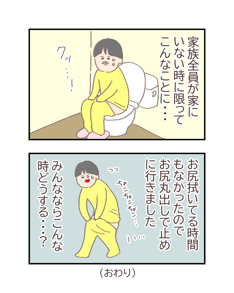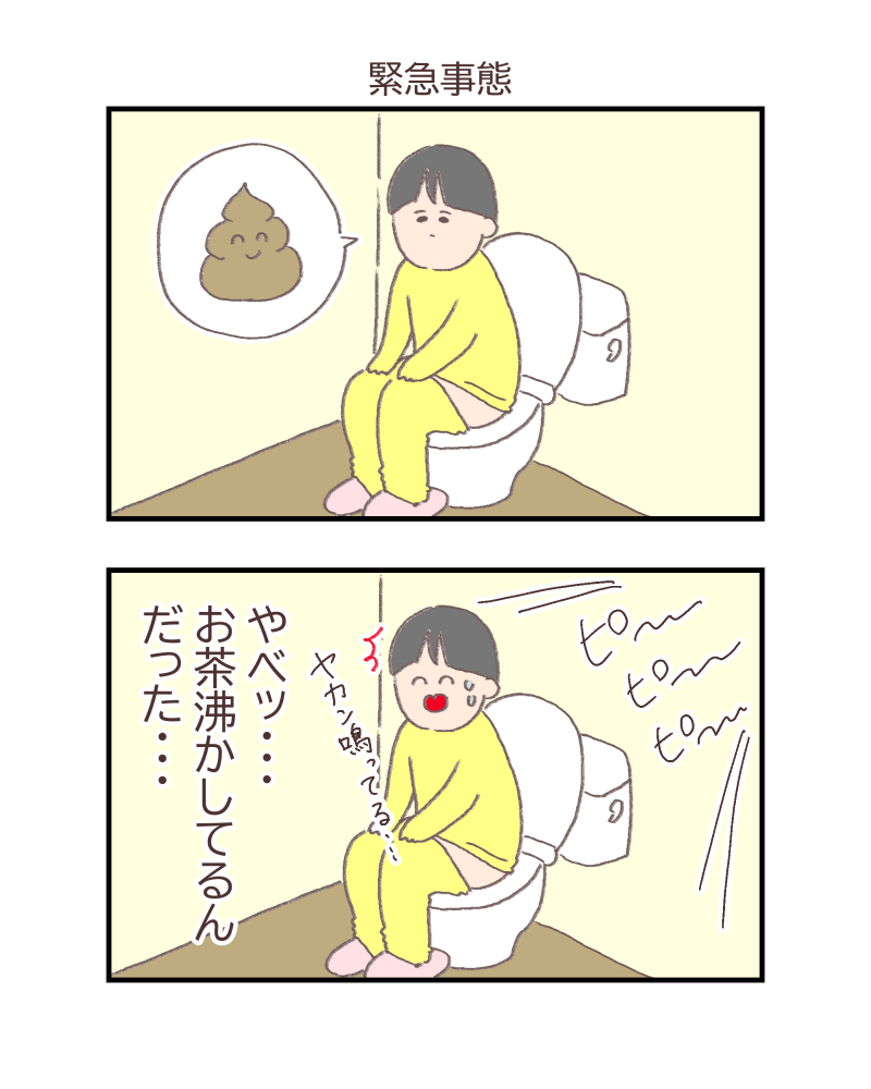 お尻拭いたほうがよかったんだろうけど、ヤカン噴きこぼすのも嫌だったし・・・