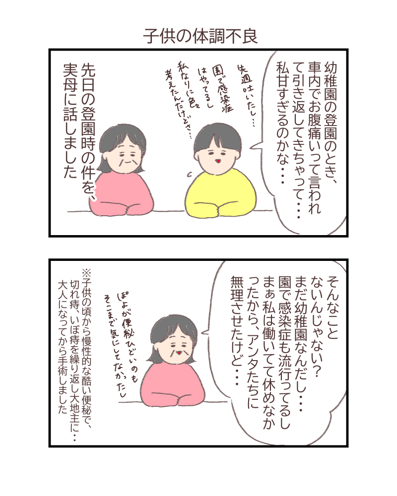 たかが便秘、、、と言われるかもしれませんが、本人の生活リズムや食事では解決できない問題もあるので・・・(大人になってから、肛門科の先生にあなたは小腸が弱いから薬で調整してあげたほうがいいよ、と言われました)