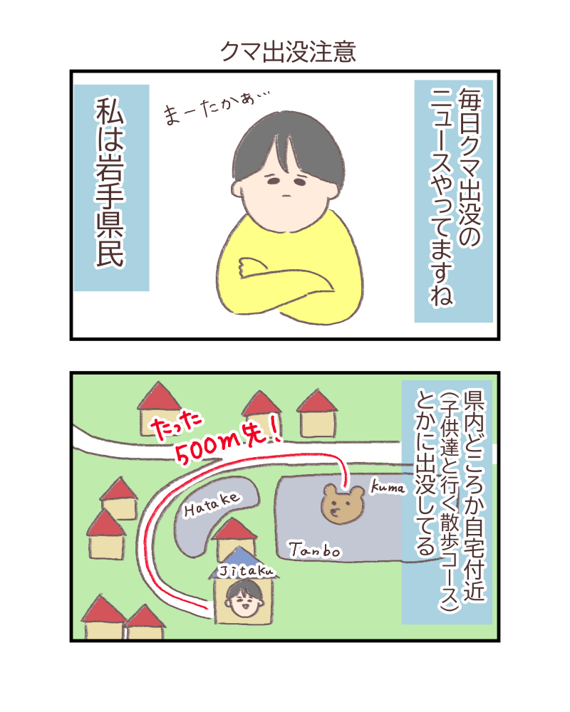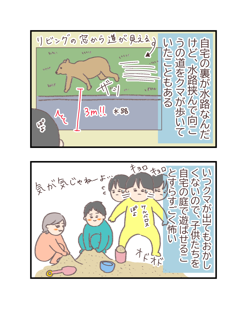 私はまだ動物園以外で実物のクマ見たことないんですけど・・・(家の窓から~の話は、数軒先のご近所さんから聞きました)