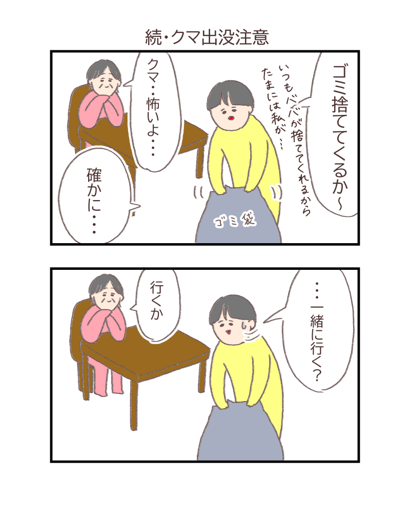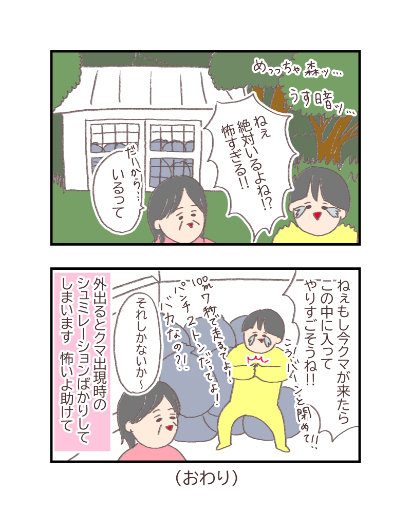 常にクマと出会ったらどうするか・・・っていうシュミレーションしながら外歩いてます・・・。