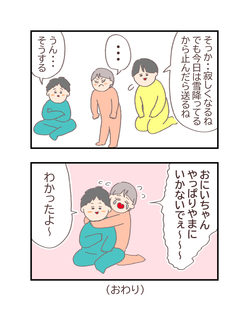 あっちいけ!とか言う割には本当に居なくなると焦って泣き出すニコちゃん。