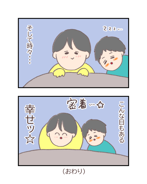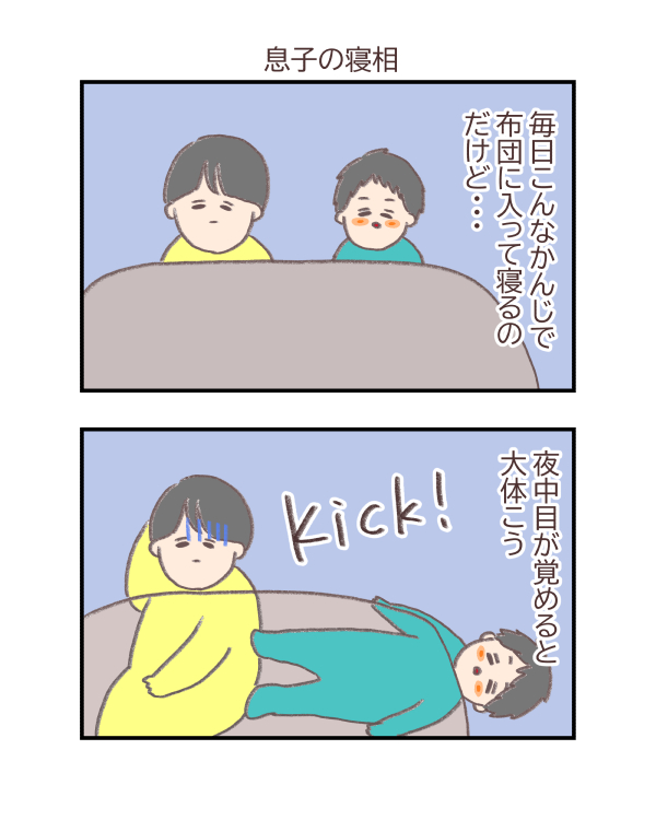 ニコちゃんが生まれる前はポコぞうと同じ布団で寝ていて毎日蹴られたり布団独占されたり・・・な毎日でしたが、今現在はニコちゃんと一緒の布団で寝ているのでニコちゃんが毎日こんなかんじです。