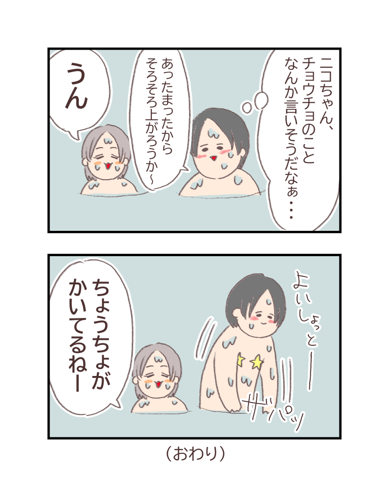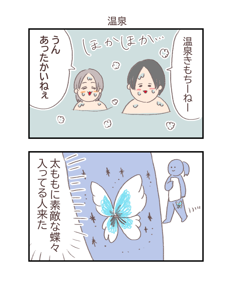 相手の方に聞こえてしまったので、「素敵な蝶々だねぇ」って言ってニコッてして上がりました。