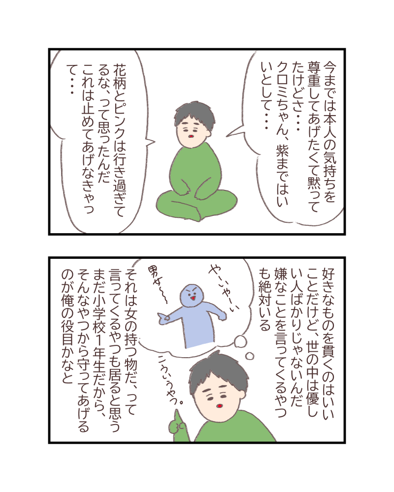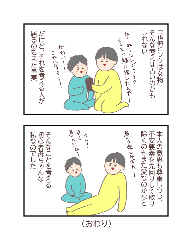 私は可愛いものを選ぶ息子に慣れてきていたので、最終的にはもう好きにしたらええ。(良い意味で)となっていました。