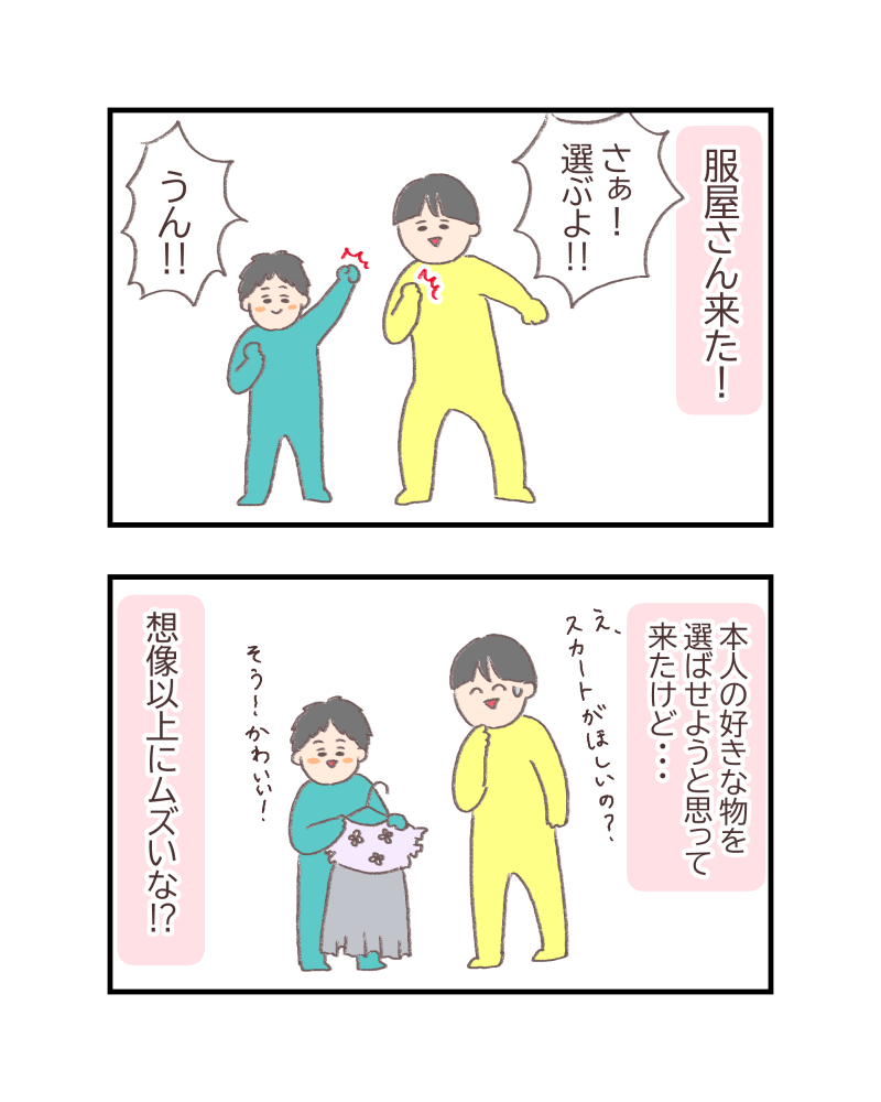 服まではなかなか好きなものを選ばせてあげられていなかったので、ついに買いに行くことにしました。