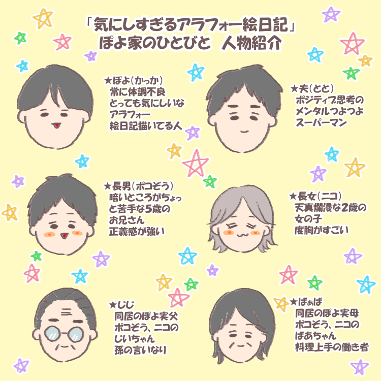 絵日記について Twitter Facebook はてブ Pocket LINE コピー 2025.10.16 気にしすぎるアラフォー絵日記は、気にしいな私(ぽよ)の日常や、育児の様子、ぽよ家であった出来事などの一部を切り取って絵日記にして投稿していきます♪ 読んでくださる皆さまに、癒しや笑い、あとたまには育児などに関するお役立ち情報もお届けできれば良いなと思っています。