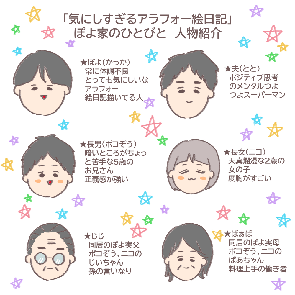 人物紹介 2025.10.162025.12.30 気にしすぎるアラフォー絵日記は、気にしいな私(ぽよ)の日常や、育児の様子、ぽよ家であった出来事などの一部を切り取って絵日記にして投稿していきます♪ 読んでくださる皆さまに、癒しや笑い、あとたまには育児などに関するお役立ち情報もお届けできれば良いなと思っています。
