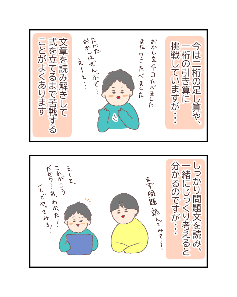 どんなふうに考えればわかりやすいかなぁ、と本人の様子を見ながら教えています。