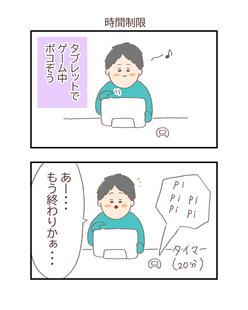 ポコぞうのゲーム時間20分に関しては、連続して20分までしかやらないよ、っていう意味です。