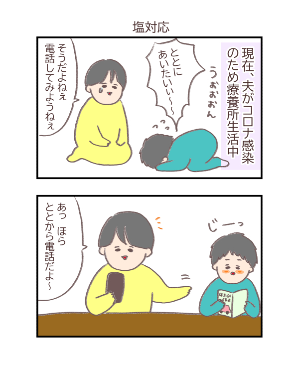 ポコぞう3歳頃、夫がコロナに感染して療養所にいたときのお話です。