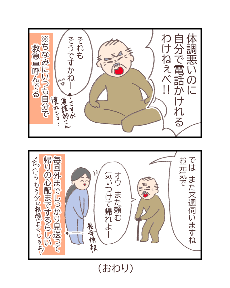 たぶん本人は悪態ついてるとか意地悪言ってるつもりは無いんだと思う・・・耳が遠いから怒鳴ってるつもりも多分無い・・・。