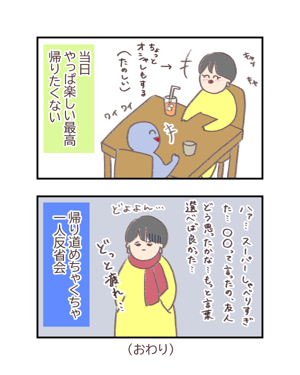 なんであんなこと言っちゃったんだろう、話しすぎたな、空気読めてなかったな・・・ってね・・・