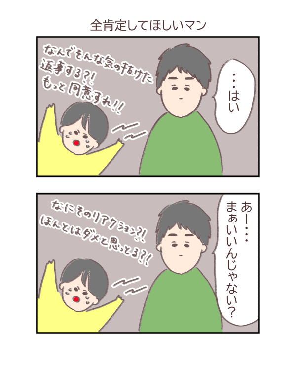 夫は寄り添ってくれることが多いので、疲れてたりして対応がいつもより冷たくなるとすごい不安になる。